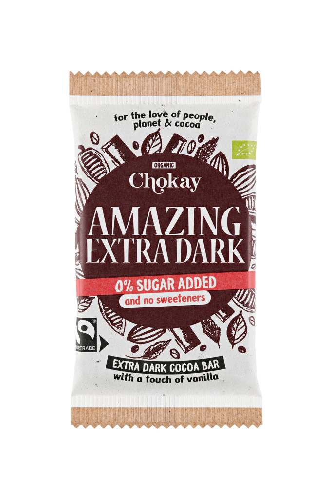 Vores chokoladebar til elskere af EKSTRA mørk chokolade. 20% mere kakao end Amazing Dark, intens med en subtil bitterhed. Fairtrade, vegansk og glutenfri. Fantastisk!