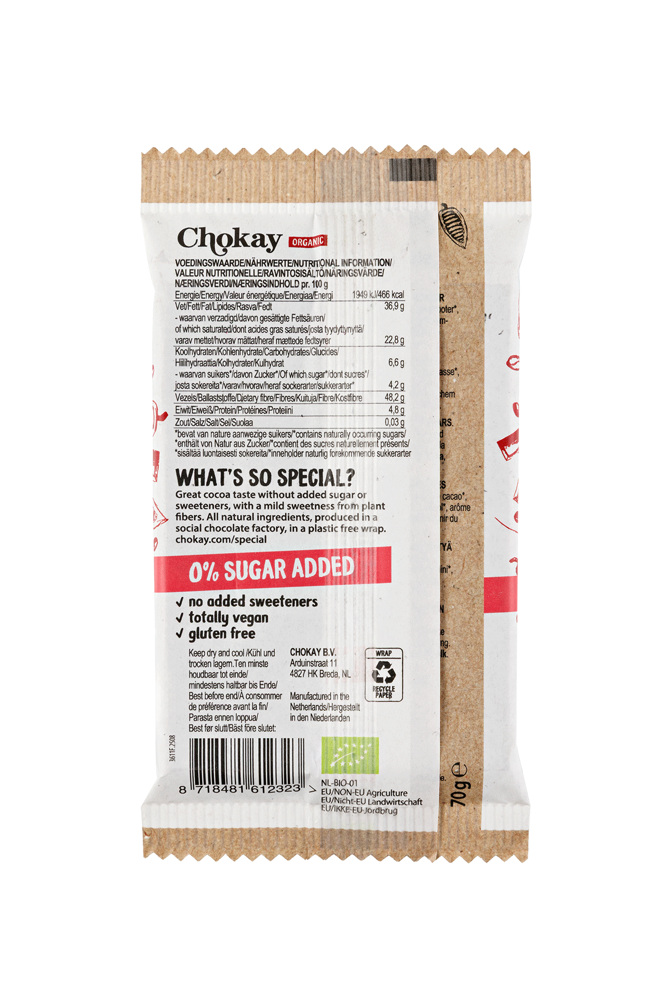 Zutaten: Ballaststoffe: Inulin*, Kakaobutter*, Kakaomasse*, entrahmtes Kakaopulver*, Sonnenblumenlecithin*, natürliches Vanillearoma*.
