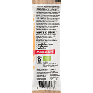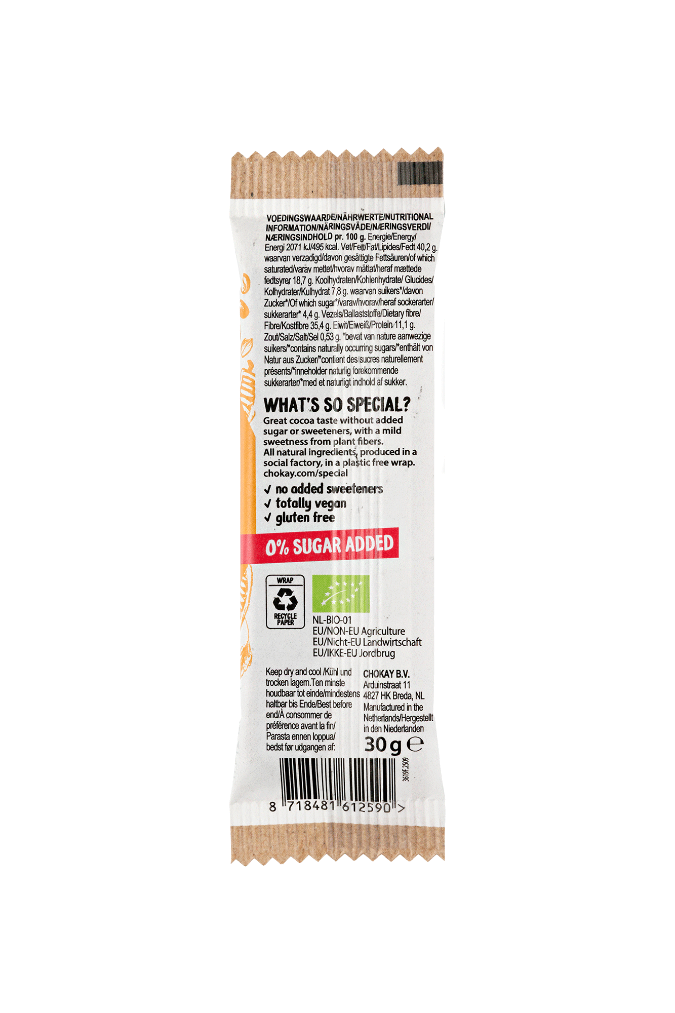 Ingredients: inulin*, peanuts* 30%, cocoa butter*, cocoa mass*, fat-reduced cocoa powder*, sea salt 1% emulsifier: sunflower lecithin*, natural caramel flavouring* <1%, natural vanilla